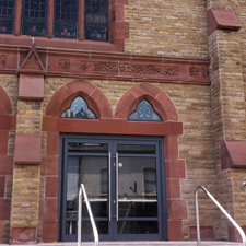 BRAMHALL METHODIST CHURCH AND CHURCH CENTRE - ALTERATIONS Extensive internal and external updating and remodelling of Bramhall Methodist Church and Church Centre. Opening up of worship area with fully glazed doors, internal screens and landscaping with ramp and steps. The Church is a "Non-designated Heritage Asset" within the conservation area. New entrance to Church Rooms with glazed screens and automatic sliding doors. Landscape and paving. Internal alterations including new staircase and lift.