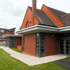 DIDSBURY BAPTIST CHURCH - REMODELLING AND EXTENSIONS The project provided a highly visible presence with a new entrance facing towards the village and improved access to the worship space and community areas. A new foyer, meeting room, office, kitchens and facilities were provided and the baptistry and worship space updated. The sloping floor was levelled and external areas were altered to allow disabled access. The new extensions use distinctly modern materials to contrast with the Victorian building whilst remaining sympathetic to the colour scheme. The original imposing red brick and terracotta Church remains the dominant feature of the site whilst the new light glazed areas welcome visitors to the Church.