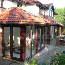 LARGE EXTENSIONS AND REMODELLING, KNUTSFORD Several two-storey and single-storey extensions to a detached dwelling in a conservation area in Knutsford, providing further bedrooms, bathroom and master suite, double gagare, cinema room, sun room and home gym. - Contemporary extensions designed to fit with the original character of the house. - Enhancing and unifying the rear of the house with highly glazed quality timber framed extensions at each end of the house and matching enlarged windows between. - Rooflights, vaulted ceilings and full height glazing form light bright rooms in a heavily wooded garden. |