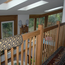 NEW FLOOR LEVEL, ALTERATIONS, EXTENSIONS Multi-level extensions to a house in Whaley Bridge, built on the steeply sloping edge of a disused quarry and overlooking a feature garden. - Split level living areas maximising the views. - Large windows and roof lights bringing light into the deep plan parts of the building. - Feature corner window with window seat overhanging the rocky edge. - Specialist Oak joinery throughout. - Upper floor extensions to bedrooms with terrace and balcony. |