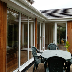 GARDEN ROOM, KNUTSFORD Garden room extension in Knutsford covering the full width of the house bringing the garden into the living areas. - Sun lounge, dining area and separate study all made to feel part of the garden. - Large glazed areas and highly insulated roof, floor, roof lights. - Structural design allowing open ceilings.